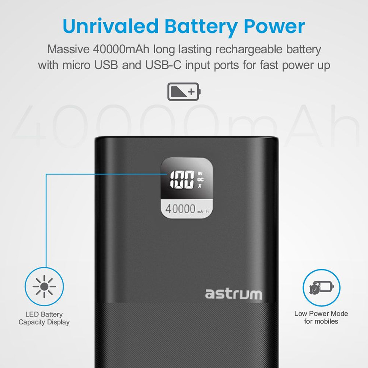 - 40000mAh long-lasting battery capacity
